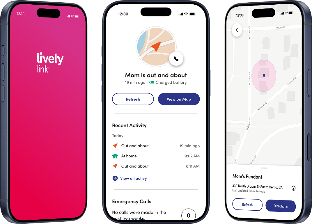 The Lively caregiver app connects with a loved one’s pendant, enabling caregivers to track location, receive notifications, and know if emergency services were contacted.