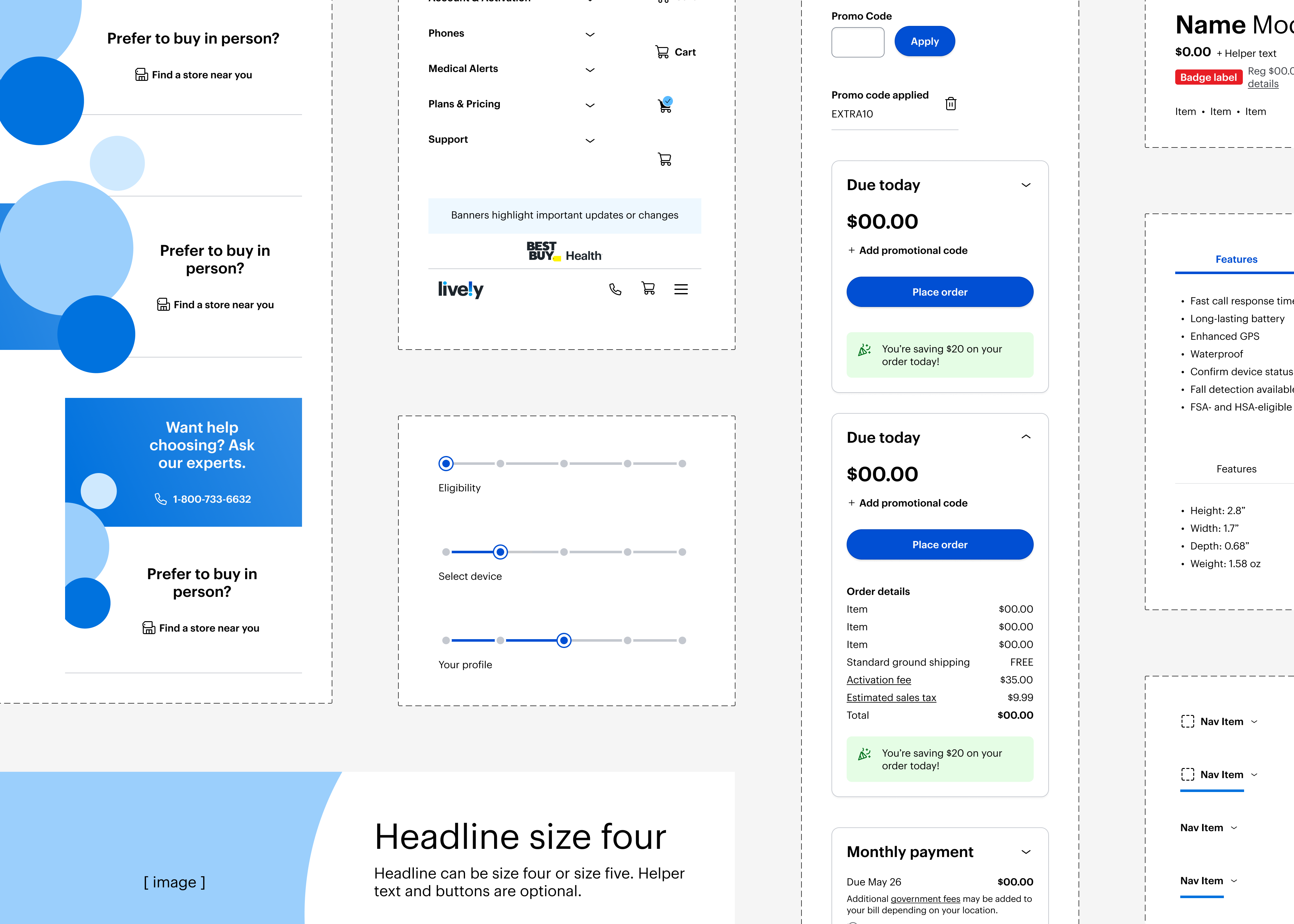 Best Buy Health needed to unify its digital experiences under one brand and scale design consistently. I led the creation and evolution of design systems — from Sunrise, a custom system built for Lively (a Best Buy Health product brand), to full adoption of BRIX, Best Buy’s enterprise design system.